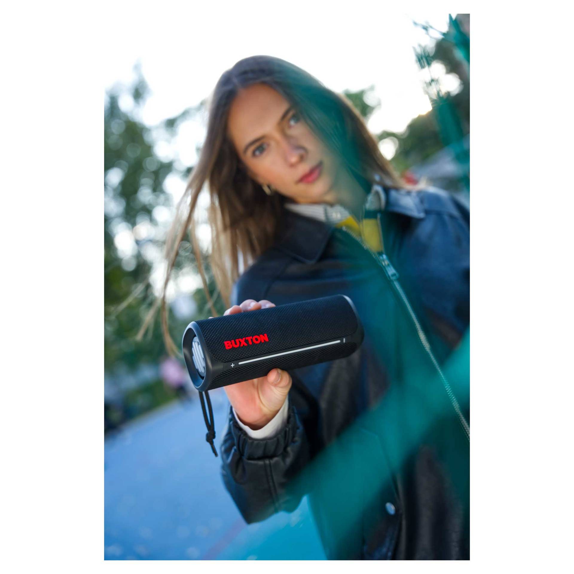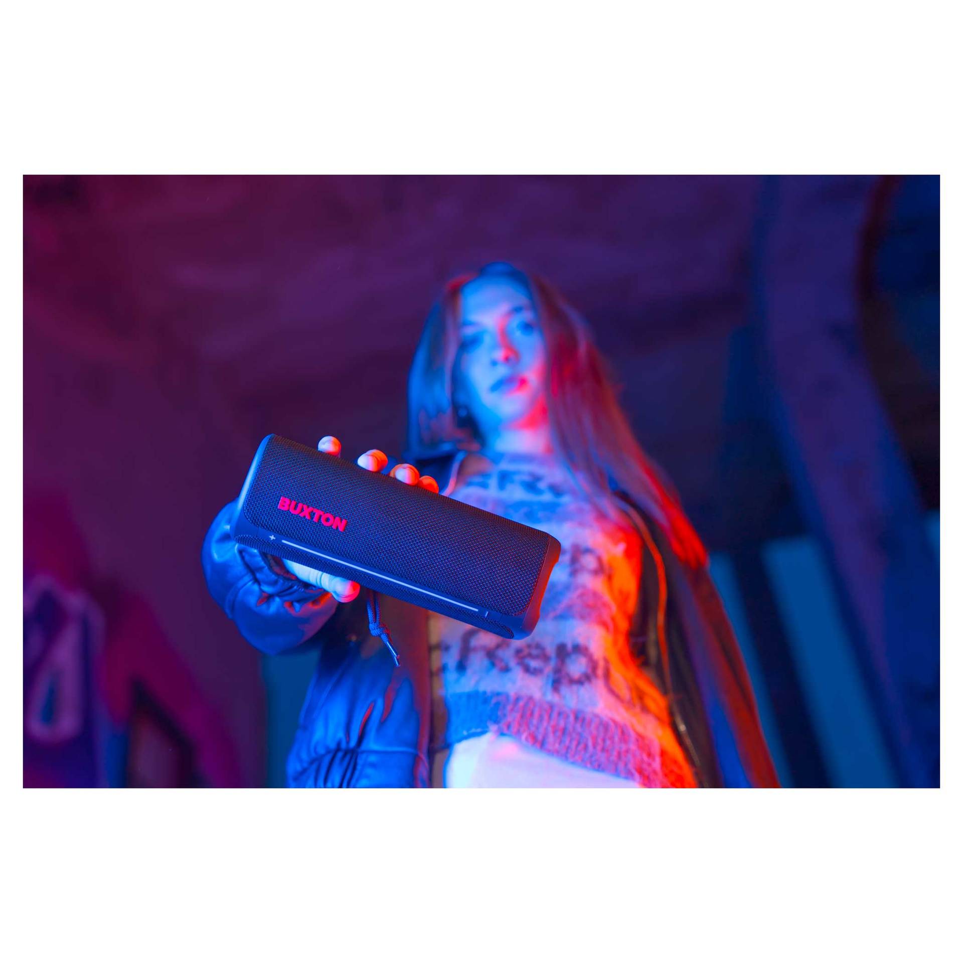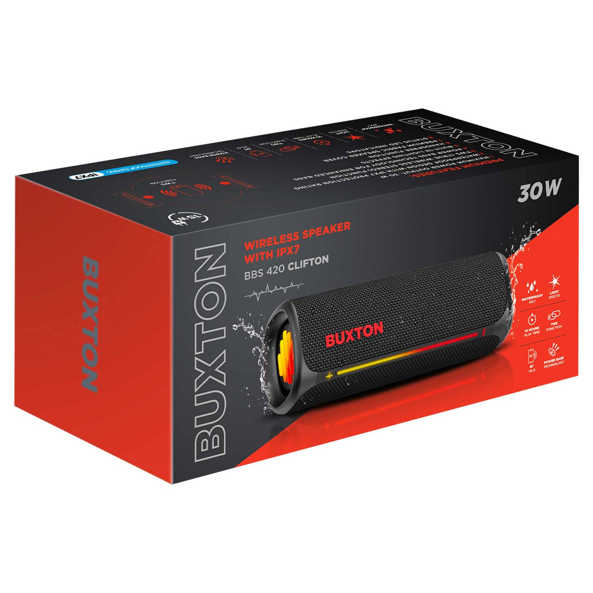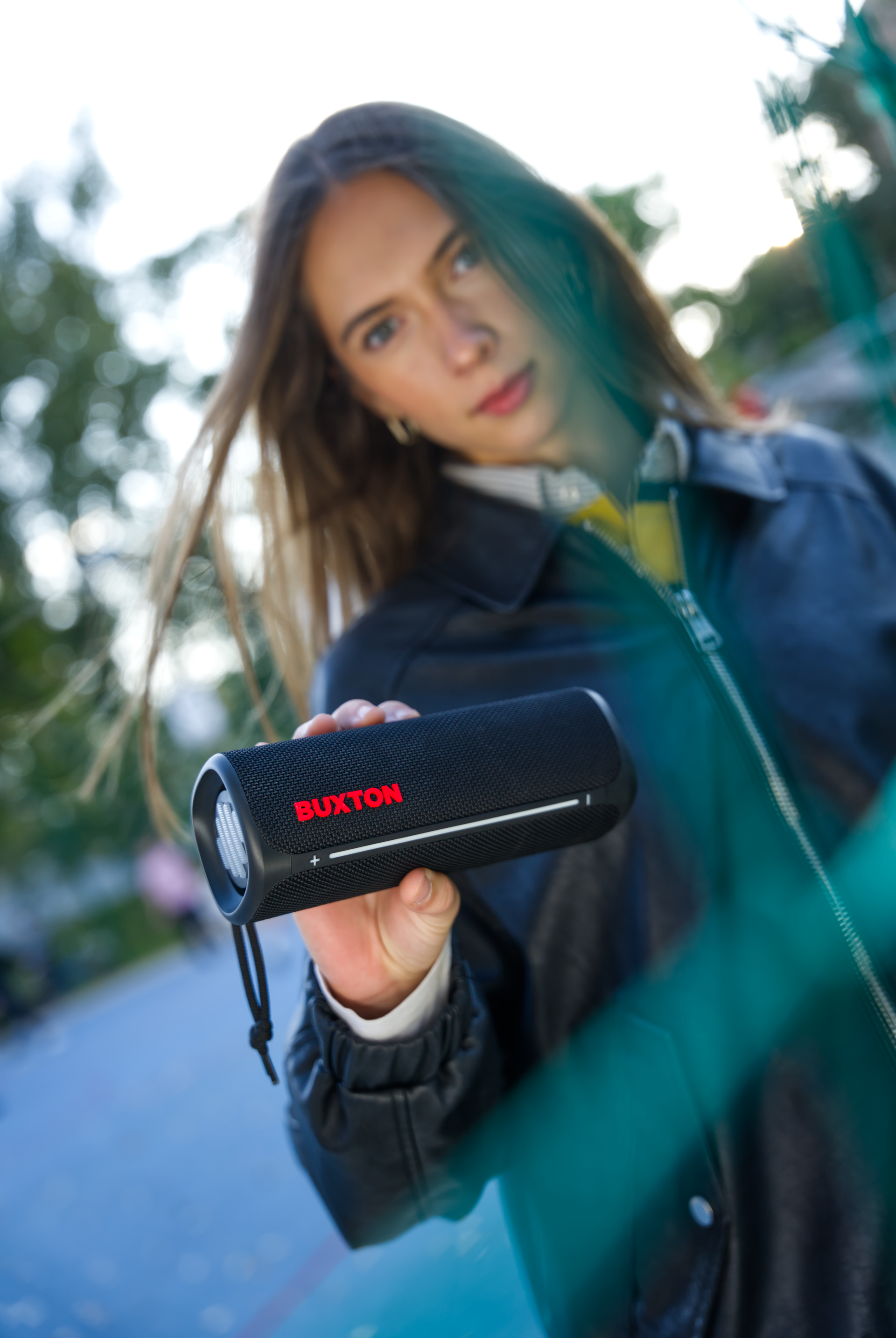 A Buxton BBS 420 CLIFTON vezeték nélküli hangszóró egyetlen kompakt eszközben ötvözi az átgondolt dizájnt, a tartósságot és az erőteljes hangzást. A 30 W hangteljesítmény, kiegészítve a Power Bass technológiával, igazi zenehallgatási élményt biztosít egy bulin, családi ünnepségen vagy akár kedvenc hangoskönyveivel való pihenés közben is. Az IPX7 víz- és nedvességállósági tanúsítványnak köszönhetően nem kell félnie kivinni a hangszórót a szabadba – az esőcseppek vagy a nedvesség nem árt neki. A textíliából készült borítás elegáns hatást kölcsönöz, a fényeffektek pedig feldobják az esti hangulatot. Az egyszerű, intuitív vezérlést LED jelzőfények egészítik ki. A beépített mikrofon lehetővé teszi a hívások kezelését anélkül, hogy a telefon után kellene nyúlnia.