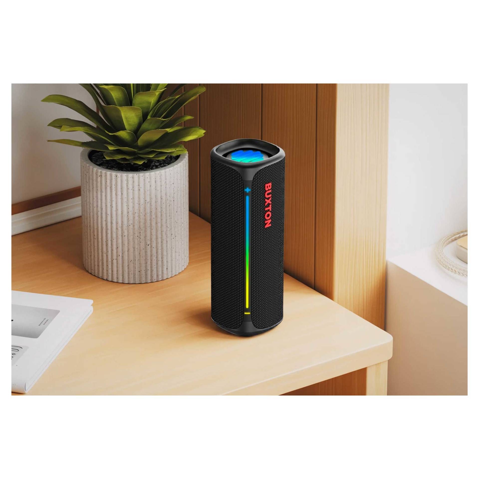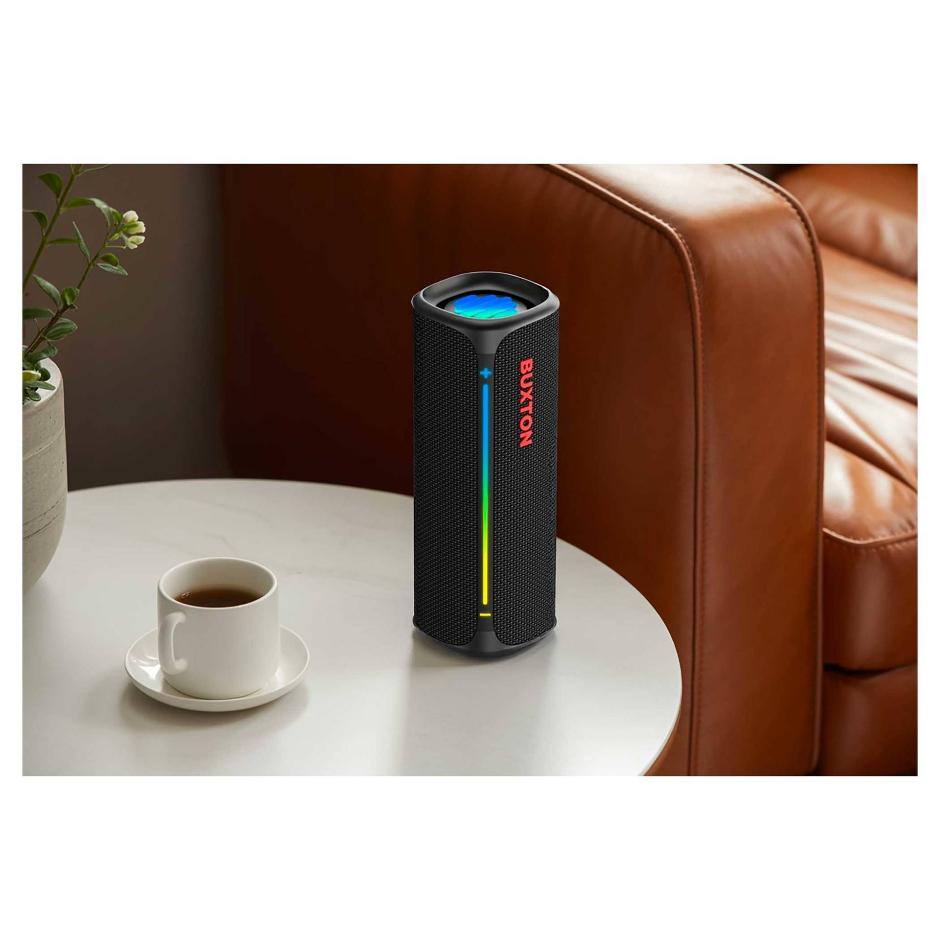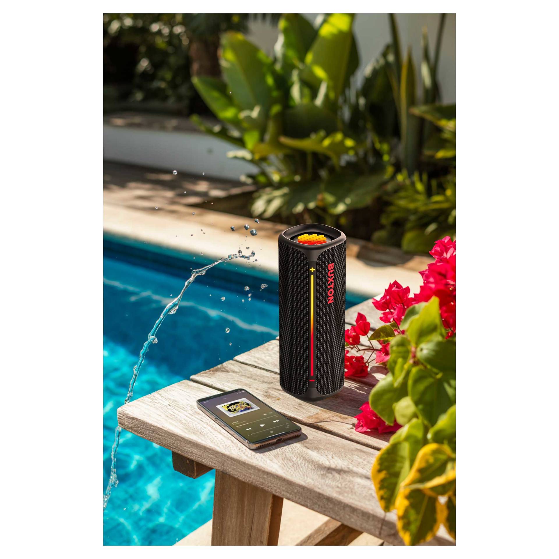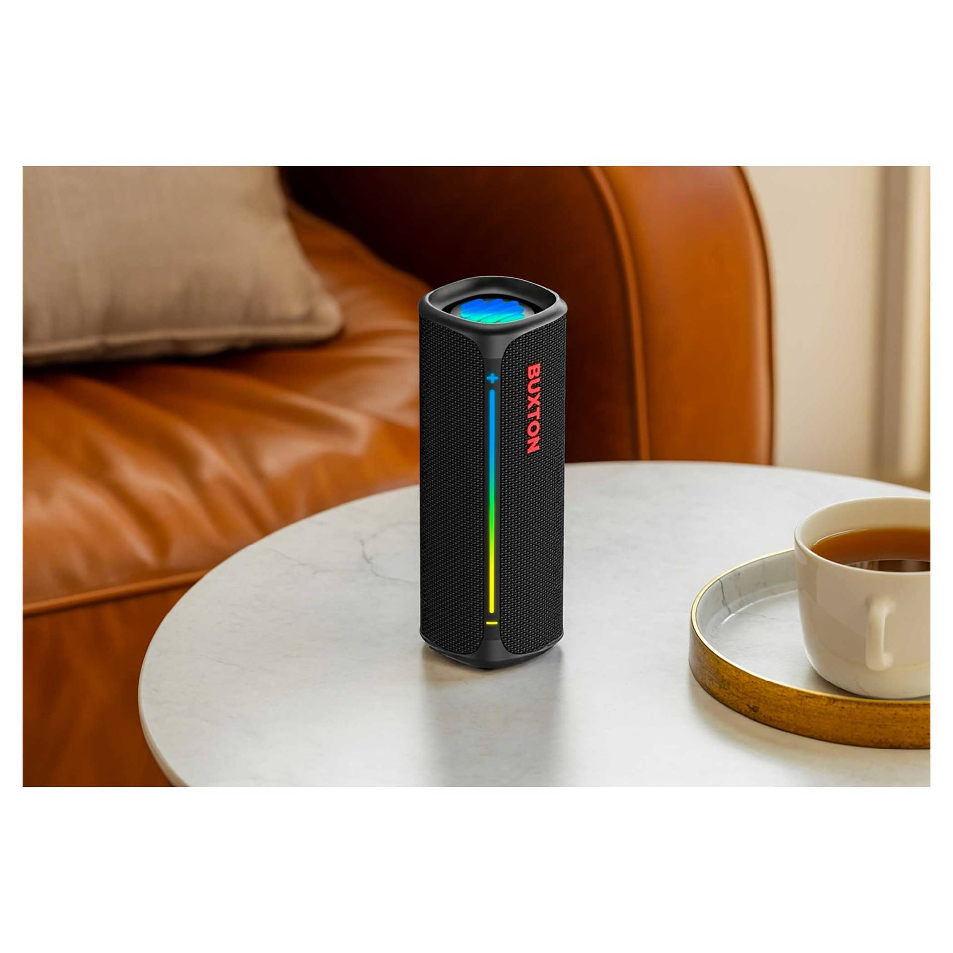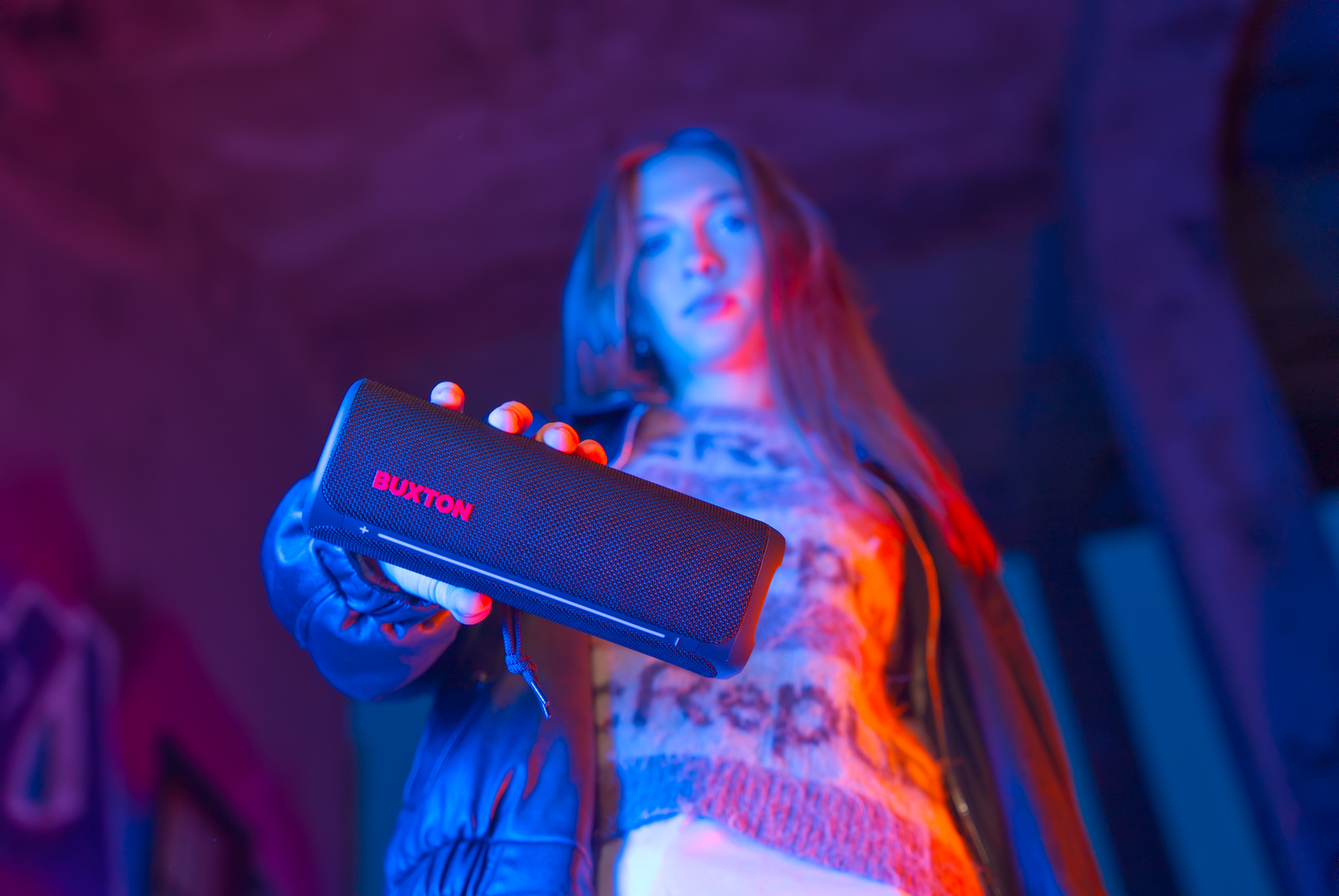 A Buxton BBS 420 CLIFTON vezeték nélküli hangszóró egyetlen kompakt eszközben ötvözi az átgondolt dizájnt, a tartósságot és az erőteljes hangzást. A 30 W hangteljesítmény, kiegészítve a Power Bass technológiával, igazi zenehallgatási élményt biztosít egy bulin, családi ünnepségen vagy akár kedvenc hangoskönyveivel való pihenés közben is. Az IPX7 víz- és nedvességállósági tanúsítványnak köszönhetően nem kell félnie kivinni a hangszórót a szabadba – az esőcseppek vagy a nedvesség nem árt neki. A textíliából készült borítás elegáns hatást kölcsönöz, a fényeffektek pedig feldobják az esti hangulatot. Az egyszerű, intuitív vezérlést LED jelzőfények egészítik ki. A beépített mikrofon lehetővé teszi a hívások kezelését anélkül, hogy a telefon után kellene nyúlnia.