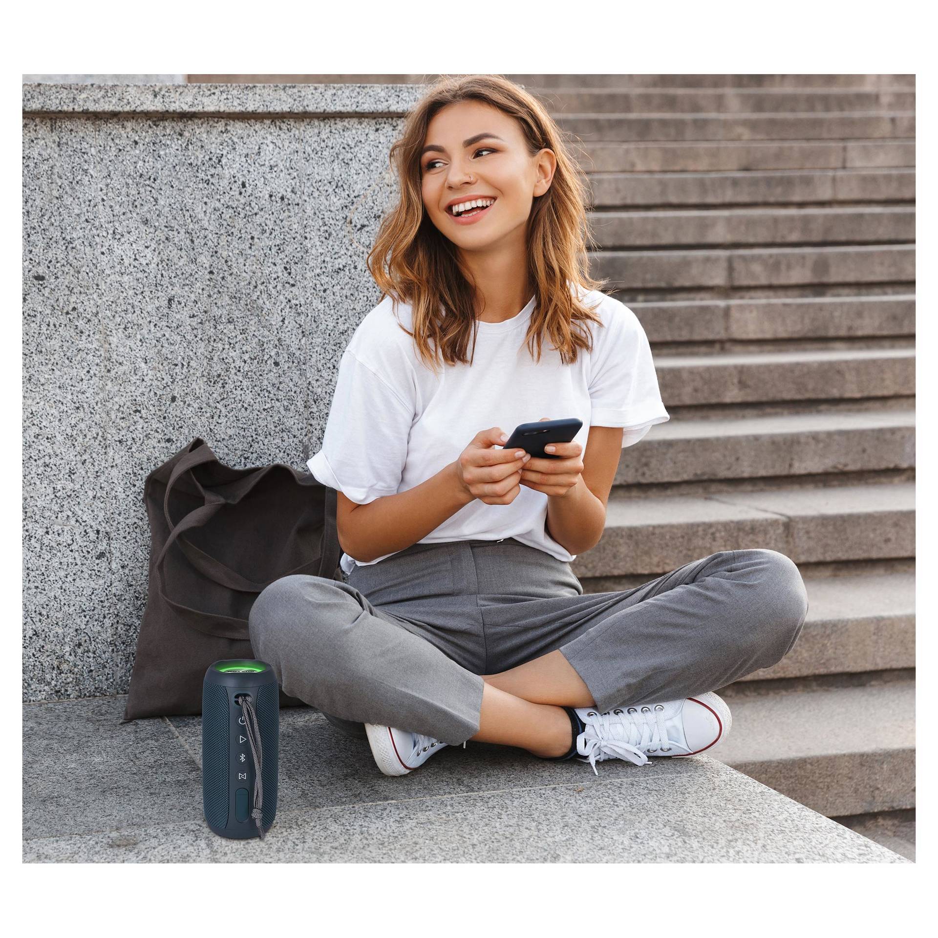 Csomag tartalma: BT hangszóró, pánt, USB töltőkábel, 3,5 mm-es jack-csatlakozós audiokábel, felhasználói kézikönyv.