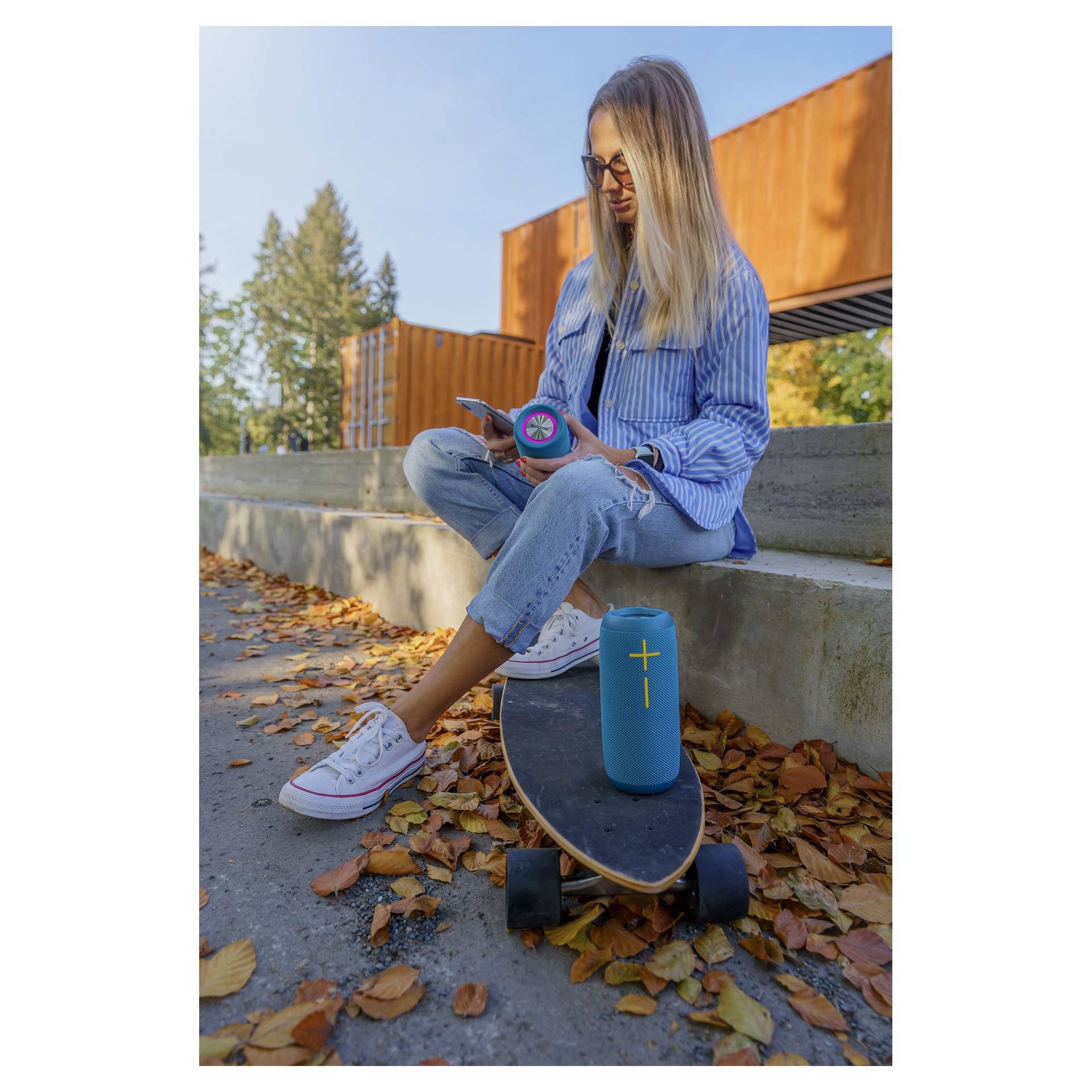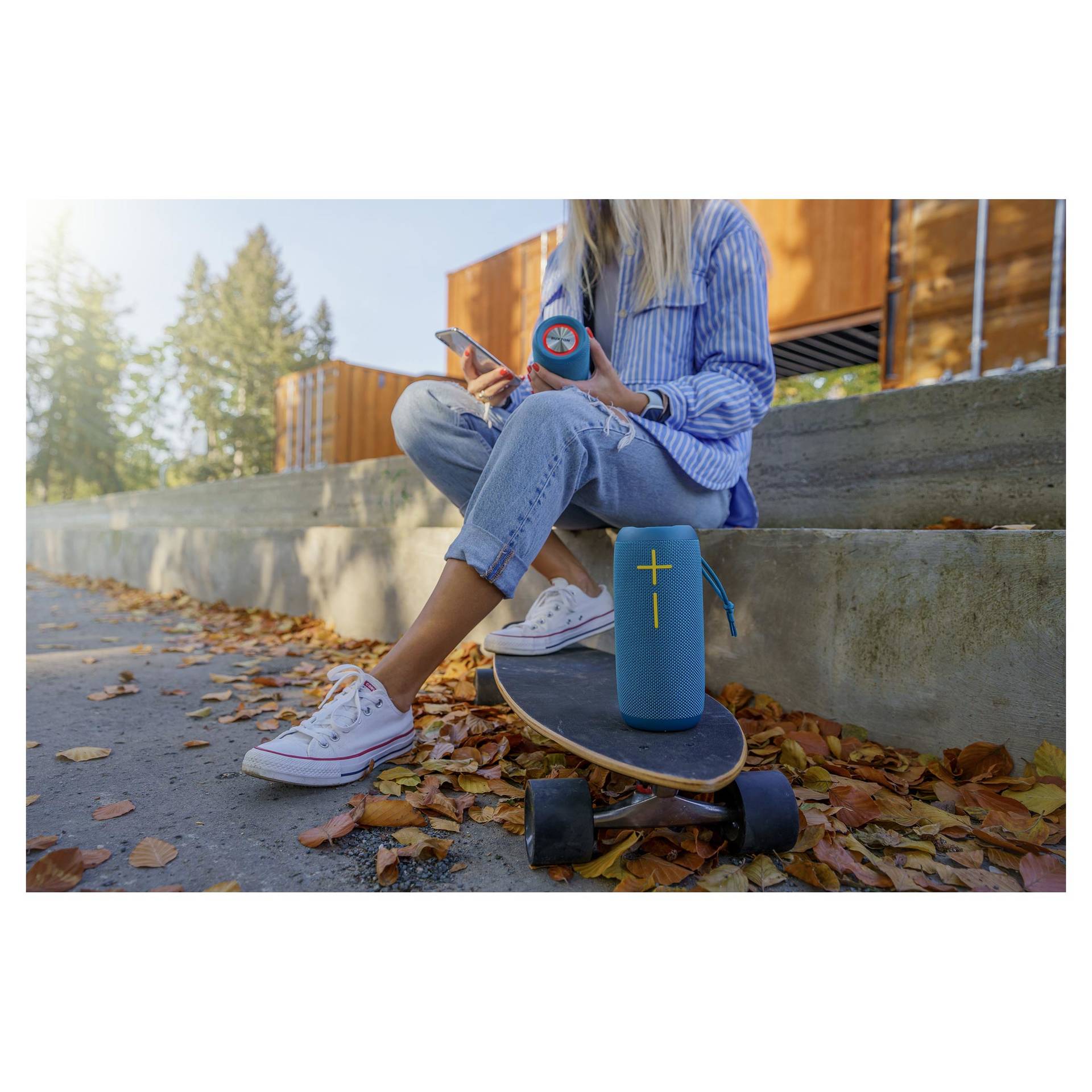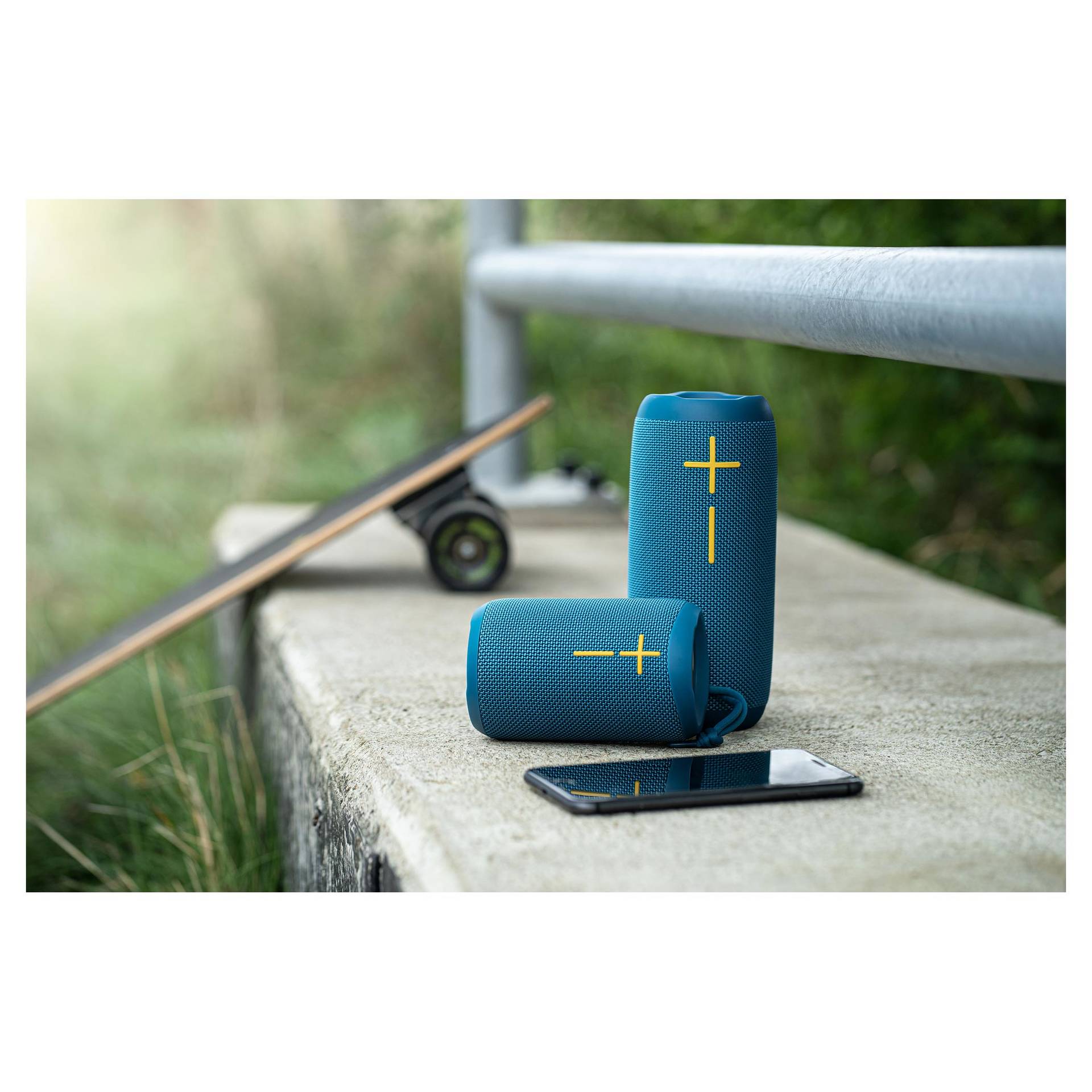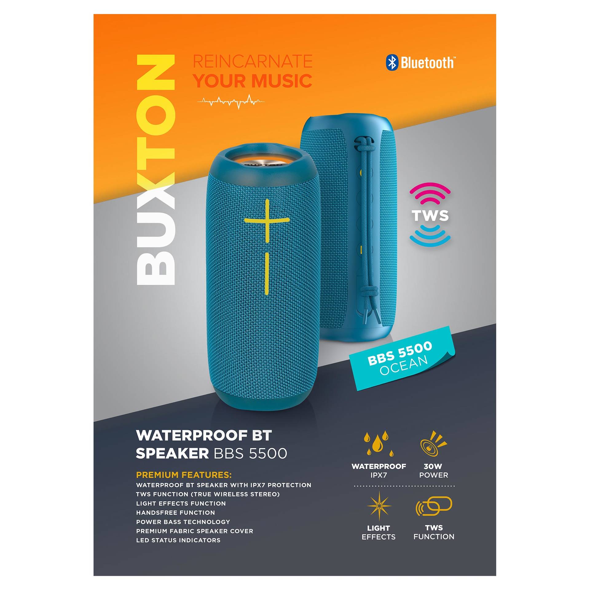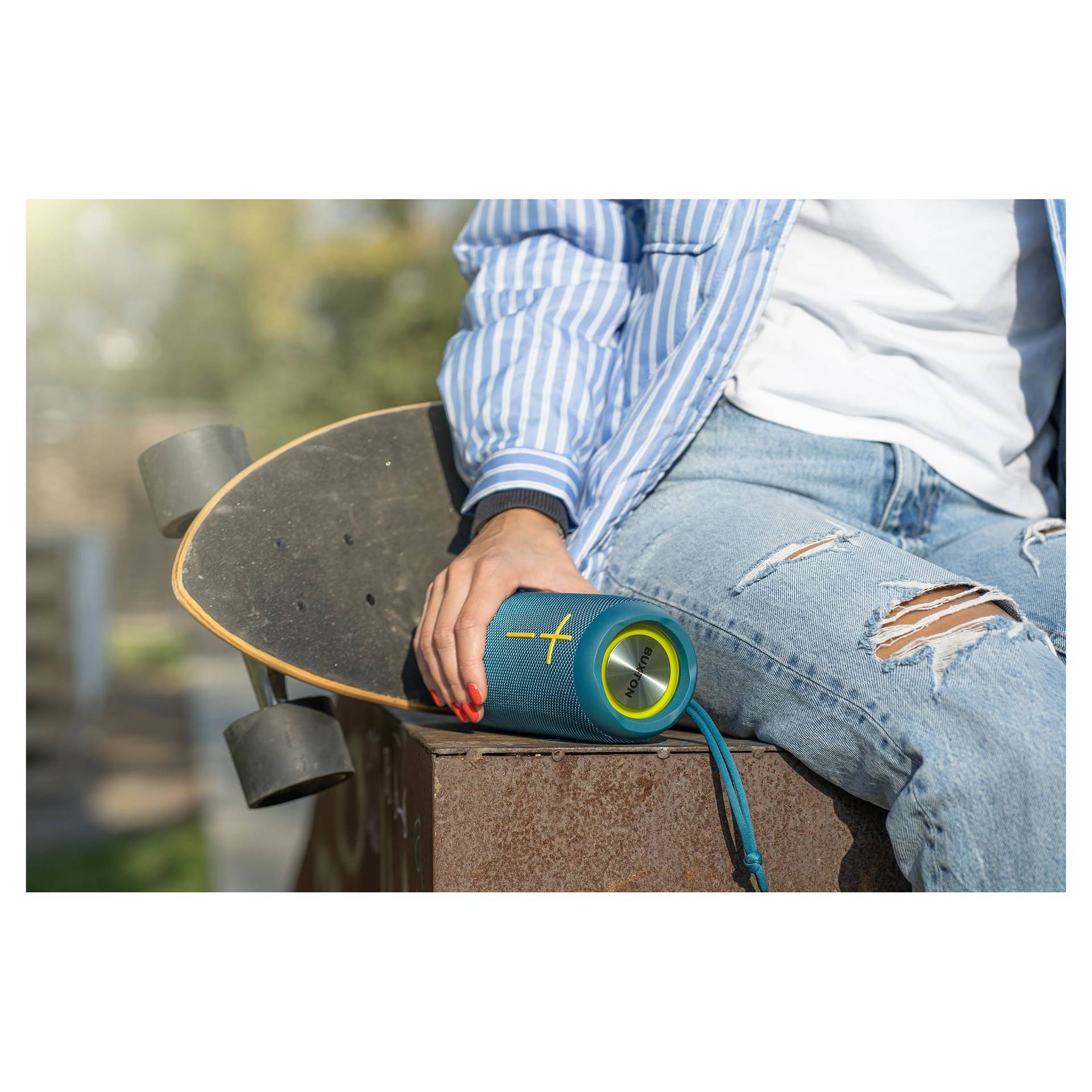 Praktikus, menő, egyszerűen hordozható. A Buxton Bluetooth hangszóró nagyszerű forrás a zene és a szöveg tiszta és meglepően dinamikus reprodukciójával. Első pillantásra igen nehezen hihető, milyen jól játszik ez a kompakt hangszóró. Ráadásul TWS-en keresztül vezeték nélkül csatlakoztathatod egy másik BBS 5500-hoz! Ez a páros aztán igen tekintélyes, 60W-os teljesítményre képes, így akár a nappaliban, akár a kertben, a panelházak között, vagy a réten zajlik a buli, a hangzás kiváló lesz. A teljes tartományú "Racetrack" hangszórót két passzív sugárzó egészíti ki, a Power Bass felpörgeti és lefojtja a basszusokat. Tényleg bárhol zenélhetsz - ha az akkumulátort teljesen feltöltöd, a hangerőt pedig a felére állítod, a hangszóró akár kilenc órán át folyamatosan játszik! Akkor aztán elég kiválasztani a zenéket – és kezdődhet a buli.
