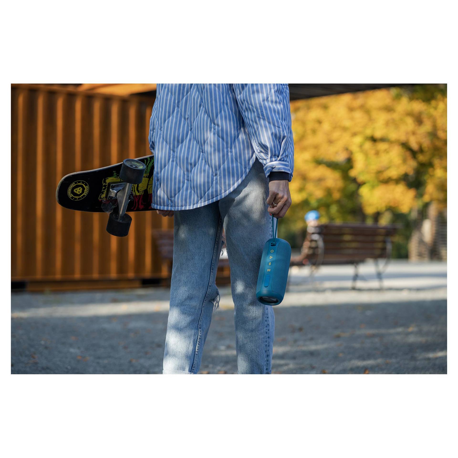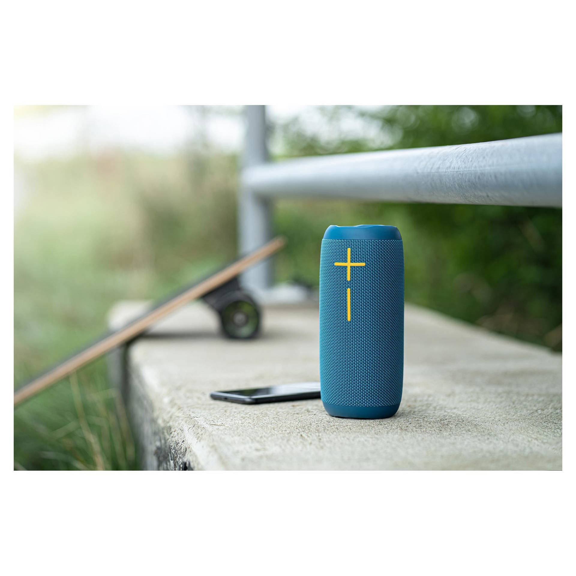 Valószínűleg nem fogod kipróbálni, de a BBS 5500 vízállósága olyan nagyszerű (IPX7), hogy akár fél órán át méteres víz alá merülve is ellenáll a folyadéknak! Ez a gyakorlatban azt jelenti, hogy egy felhőszakadás sem állítja meg. Játszik szárazon és esőben, a zeneforrástól akár 15 méterre. Ráadásul egyszerűen trendi - kék prémium szövet borítja. És mindig tudja a dolgát - van rajta memóriakártya hely, AUX-In bemenet, állapotjelző LED-ek, handsfree gyanánt is működik, és a súlya alig több mint fél kiló. Egyszerűen ütős.