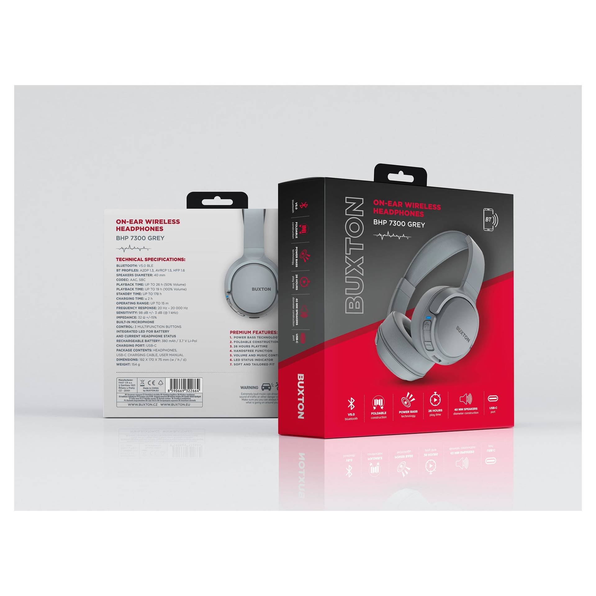A Buxton BHP 7300 fejhallgató Bluetooth V5.3 BLE segítségével könnyen csatlakoztatható, a forrástól számított 15-méteres hatótávolsággal. Kitűnő a közvetlenül a fejhallgatón található hangerőszabályzó, a beépített mikrofon, a három többfunkciós vezérlőgomb, a kihangosító funkció és a LED-dióda, amely bármikor tájékoztat az akkumulátor szintjéről és a fejhallgató aktuális állapotáról. Az USB-C porton keresztül kevesebb mint két óra alatt feltöltött fejhallgató a kiválasztott maximális hangerőn 40 órán át, félhangerőn pedig akár 55 órán át képes játszani!